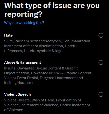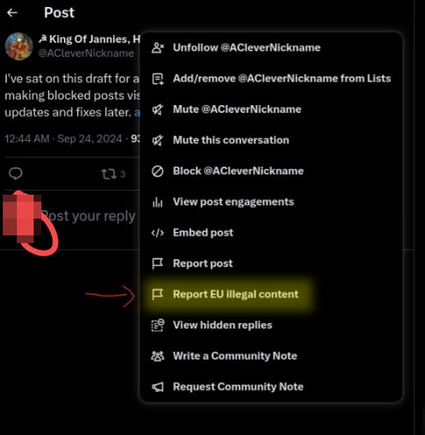 Note: this draft began far before a number of changes at X (formerly Twitter, which I’m not re-writing to accommodate the new name of any further) occurred. Please mind that as we continue. As Elon Musk threatens to make all blocked posts visible, I must redouble my efforts to complete this guide. This guide not only serves as a way to avoid being reported, so much, as a way to identify and report bad actors. There will be many edits and additions, so reload to ensure you see the latest version.