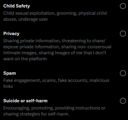 Reporting inappropriate content on X (formerly Twitter), and avoiding writing inappropriate content